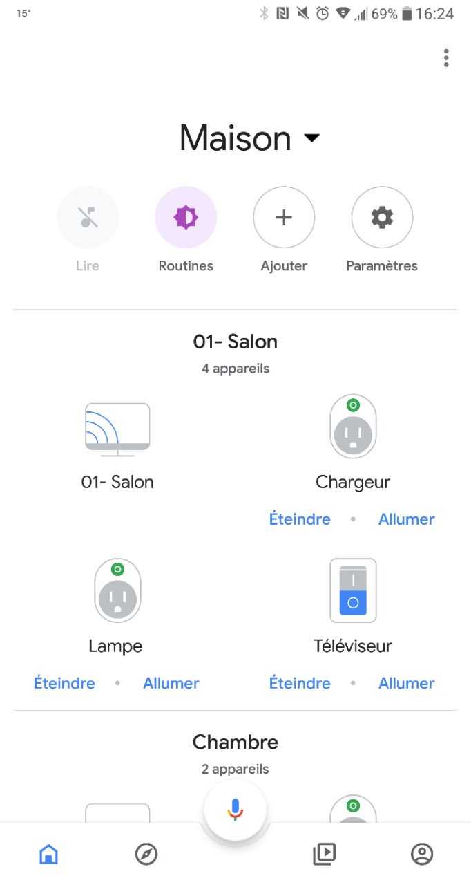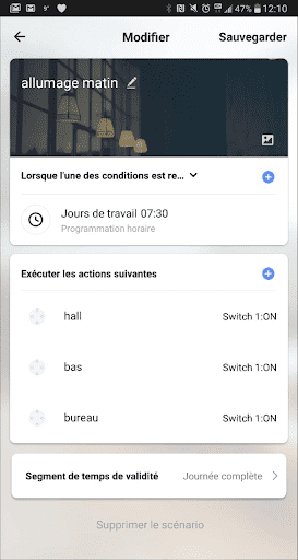 On peut aussi programmer des allumages automatiques via des “routines”.