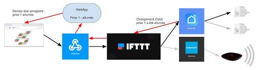 C’est le mode le plus intéressant au final, avec l’utilisation des WebHooks d’IFTTT on peut créer un véritable centre de commande de notre domotique.