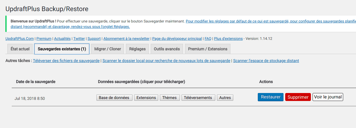 Contrairement à d'autres solutions qui ne sauvegardent que la base de données, cette extension permet de sauvegarder l'ensemble du site: base de données, extensions, thèmes, etc.